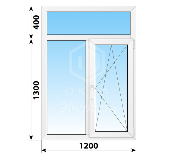 Теплое остекление лоджий под ключ. Двухстворчатое пластиковое окно 1300x1400 Г-ПО